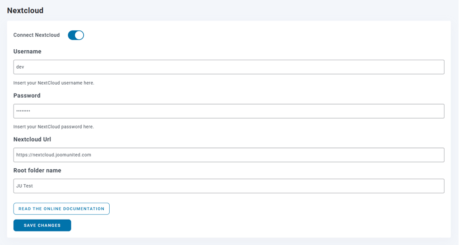 In general, WP Media Folder offers really easy-to-follow steps to connect NextCloud. We need to go to Settings > WP Media Folder > Cloud & Media offload > Cloud connectors > Nextcloud, on this section, we need to enable the "Connect NextCloud" option, which will open a section to introduce: