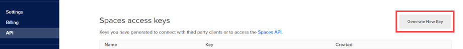 First of all, login to your DigitalOcean account and navigate here (the API section) and click on Generate New Key button.
