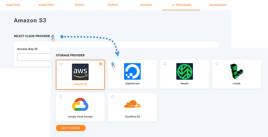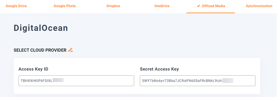 Now that we have the keys and the space created, go to Settings > WP Media Folder > Cloud > Offload Media. Next, click the Edit icon at Select Cloud Provider and choose DigitalOcean.