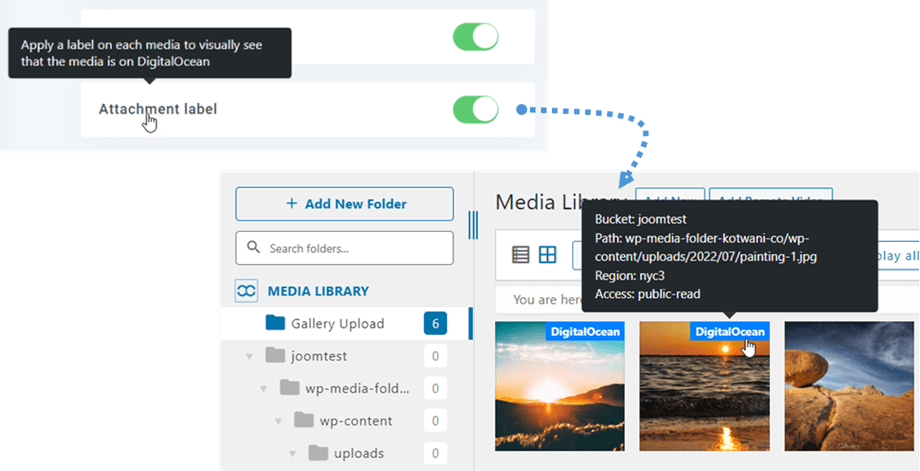 If you enable the label option, the images uploaded to DigitalOcean will show the label.
