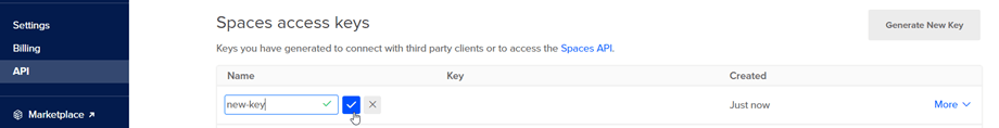 Type your API Key name and click on the tick button.