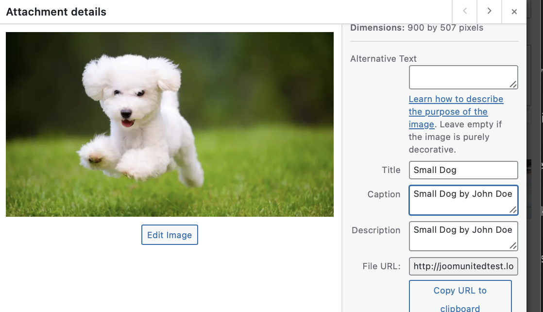 - Add a Title, Alt Text, and Description.