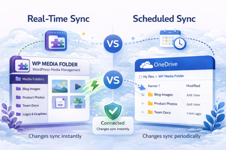Choosing between these modes depends on operational requirements. Real-time sync prioritizes accuracy and immediacy, while scheduled sync prioritizes performance and resource optimization. WP Media Folder allows teams to balance both factors based on their workflow.