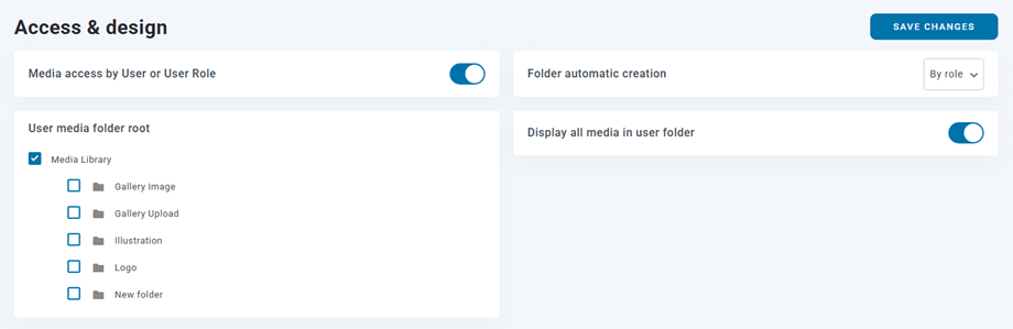 Each folder can have its own configuration, allowing highly flexible access control across your media library.