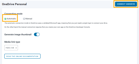 Click on Automatic and then the "Connect OneDrive" button. This will initiate the authentication process with Microsoft OneDrive.