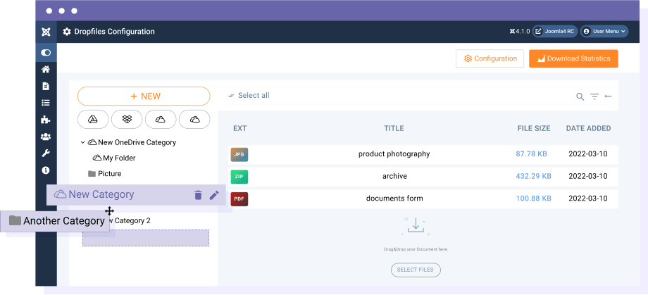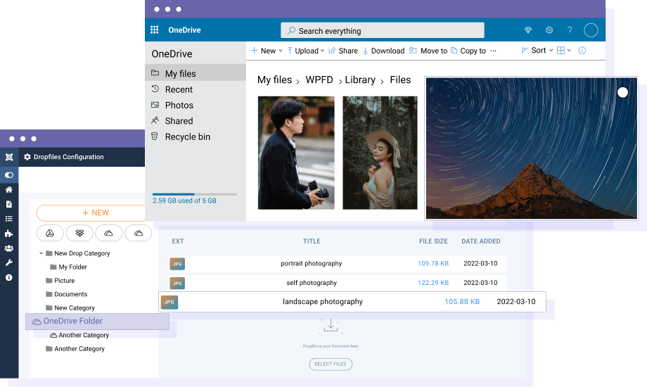 The synchronization works both ways, which means that you can upload files in Dropfiles (our Joomla extension) and then access and manage these files from OneDrive. This is perfect if you're looking to sync a large amount of files or to give a client access to a file category without giving access to Joomla administration panel.