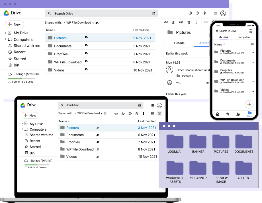 Integrate Google Drive and Google Team Drive in WordPress and use your essential Google Drive files and folders directly from your website.
