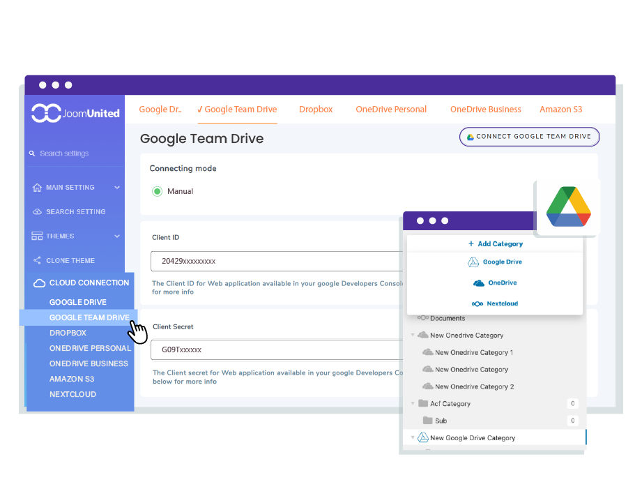 Take your productivity to the next level with our Google Drive integration. It's designed to connect and manage files from the Google Drive Team. Discover exciting features and the simplest way to keep everything in sync between Google Drive and your WordPress site.