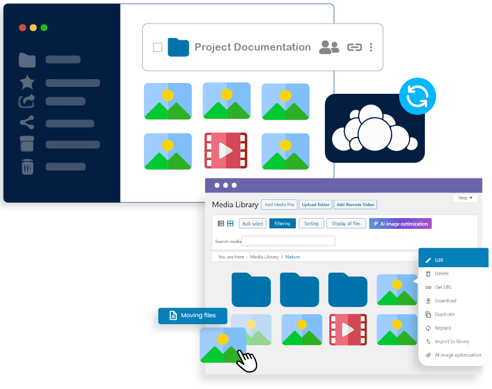 View, organize, and rename your OwnCloud folders directly from WordPress. Use the familiar WP Media Folder interface to move files and structure your OwnCloud storage the way you want, all from your WordPress dashboard.