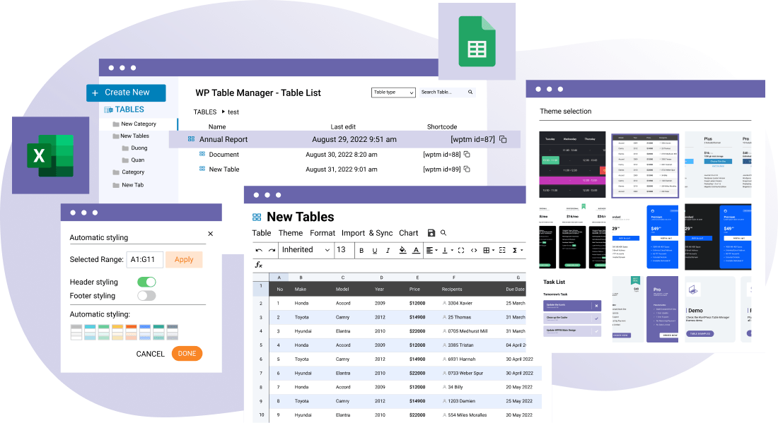 | Auto synchronize Excel | Auto synchronize a local Excel file (on your server) with a table or fetch data from a Google Sheet. Custom styles included or not |